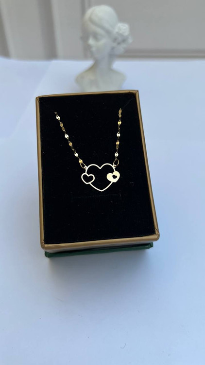 طراحی قلبیشکل این پلاک، نمادی از عشق و لطافت است و در کنار زنجیر ظریف طلایی، جلوهای گرم و دلنشین به استایل روزانه یا استایل عاشقانه شما میبخشد.