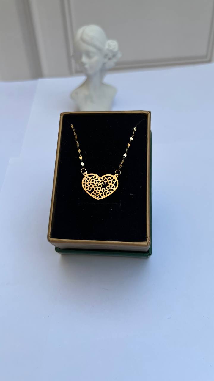 طراحی قلبیشکل این پلاک، نمادی از عشق و لطافت است و در کنار زنجیر ظریف طلایی، جلوهای گرم و دلنشین به استایل روزانه یا استایل عاشقانه شما میبخشد.